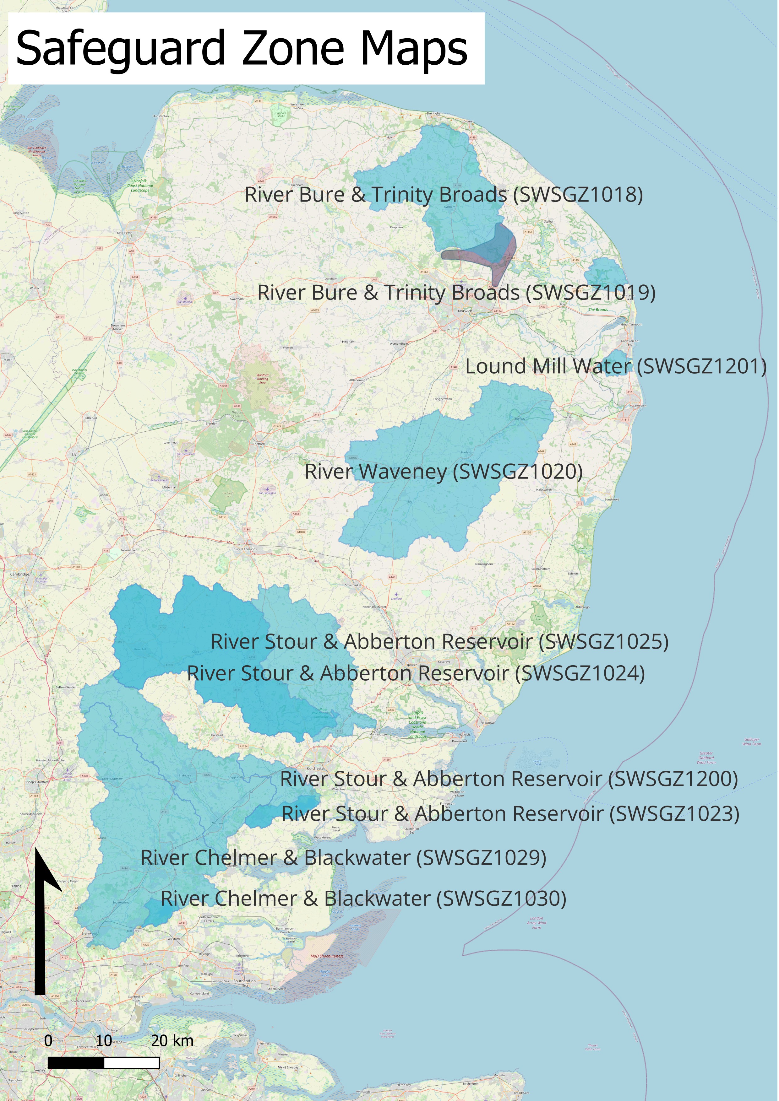 Shaded areas highlight where grant funding opportunities are currently available, to improve water quality in drinking water catchments.